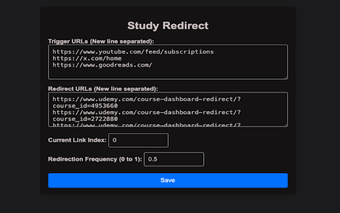 이 추가 기능은 온라인에서 방해 요소로 어려움을 겪는 학생과 전문가에게 특히 유용합니다. 간단한 설정과 사용자 친화적인 인터페이스를 갖춘 Study Redirect는 학습 시간을 관리하는 개인화된 접근 방식을 허용합니다. 관련 리소스로 사용자를 리디렉션함으로써 규율 있는 학습 환경을 조성하여 목표를 유지하고 학업 또는 직업적 목표를 달성하는 데 도움을 줍니다.